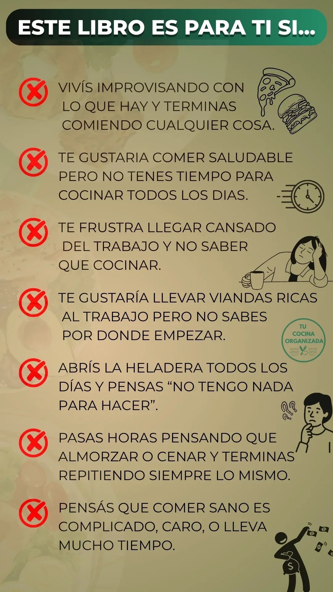 Si alguna vez pensaste "quiero comer mejor, pero no sé por dónde empezar", o "no tengo tiempo", o "todo lo saludable me parece caro o complicado"… entonces sí, esto es exactamente para vos.